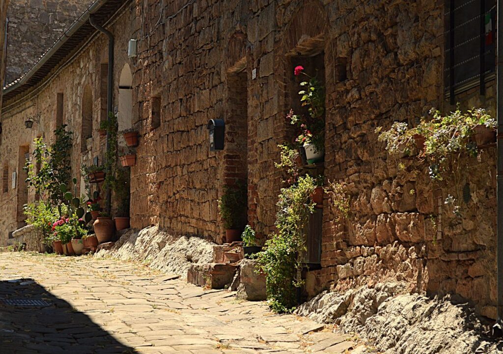 Aux premiers abords, le village m’a paru abandonné. Personne dans ses rues. Les vieilles bâtisses en pierre et les ruelles pavées très irrégulières, quelques maisons qui attendaient visiblement une rénovation… Tout cela dévoilait une Toscane au charme intact et que l’on ne s’attend plus à trouver.
